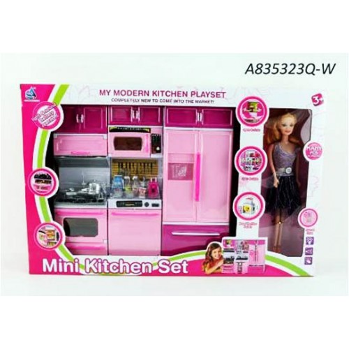 KITCHEN SET, W/DOLL & LIGHT & SOUND, W.BX