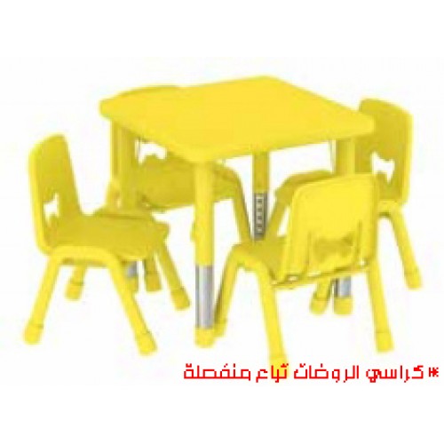 طاولة رياض أطفال مربعة أصفر 4 كراسي أساسي
