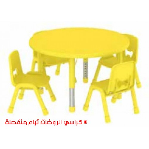 طاولة رياض أطفال دائرية أصفر 4 كراسي أساسي